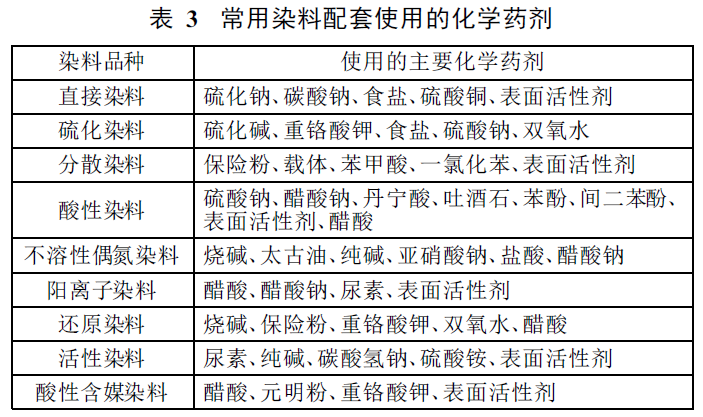 染料配套使用的化學藥劑見表3: