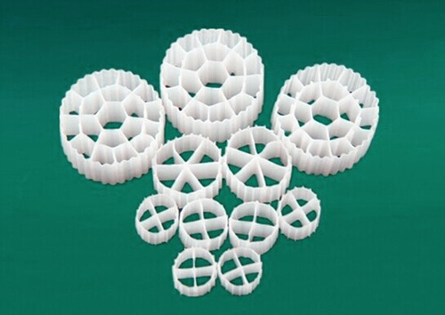 MBBR生物填料,即是流化床填料。是采用優(yōu)質(zhì)的共聚材料,根據(jù)污水性質(zhì)不同,在高分子材料中整合多種有利于微生物快速附著生長的微量元素,特殊的結(jié)構(gòu),空心填料結(jié)構(gòu)為內(nèi)外共有三層空心圓,每個圓內(nèi)有1條棱,外有36條棱,經(jīng)多次研究開發(fā)成功,采用一次成型。具有比表面積大、親水性與親和生物活性高、掛膜快、處理效果好、使用壽命長等優(yōu)點,是去除氨氮、脫碳除磷、污水凈化、