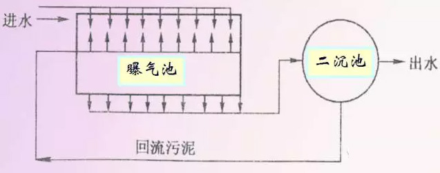 曝氣池中的MLSS約為300~500mg/L,曝氣時間比較短,約為2~3h,處理效率僅約65%左右,有別于傳統(tǒng)的活性污泥法,故常稱變形曝氣。