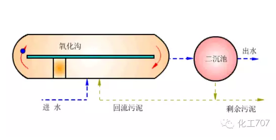氧化溝是延時曝氣法的一種特殊形式,它的池體狹長,池深較淺,在溝槽中設(shè)有表面曝氣裝置。