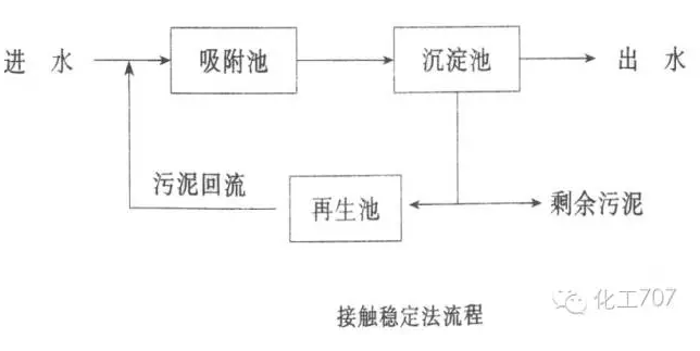 混合液曝氣過程中第一階段BOD5的下降是由于吸附作用造成的,對于溶解的有機(jī)物,吸附作用不大或沒有,因此,把這種方法稱為接觸穩(wěn)定法,也叫吸附再生法。混合液的曝氣完成了吸附作用,回流污泥的曝氣完成穩(wěn)定作用。
