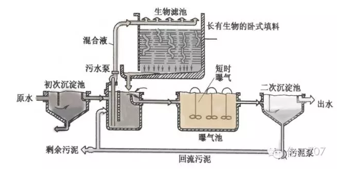 在通常的活性污泥過程之前設(shè)置一個塔式濾池,它同曝氣池可以是串聯(lián)或并聯(lián)的。