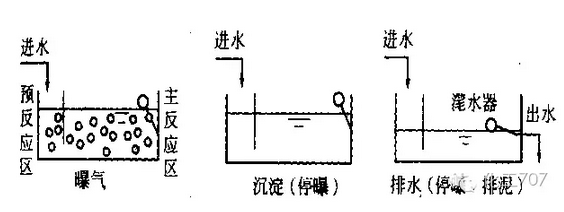 SBR工藝的基本運(yùn)行模式由進(jìn)水、反應(yīng)、沉淀、出水和閑置五個基本過程組成,從污水流入到閑置結(jié)束構(gòu)成一個周期,在每個周期里上述過程都是在一個設(shè)有曝氣或攪拌裝置的反應(yīng)器內(nèi)依次進(jìn)行的。