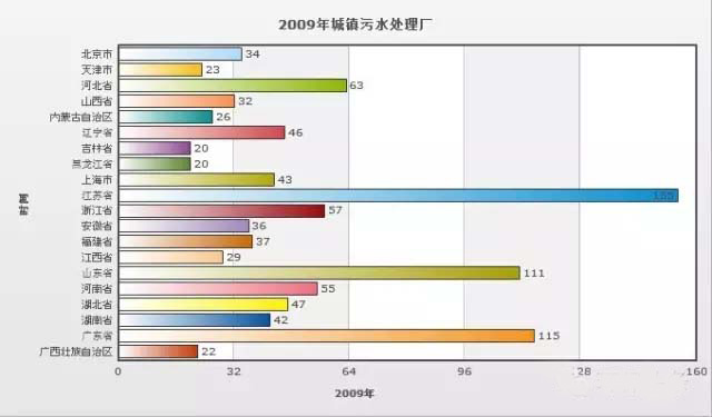 從數(shù)據(jù)上看,全國城鎮(zhèn)污水處理廠數(shù)量前三甲分別為:江蘇省、廣東省、山東省,三省合計占全國總數(shù)量的三分之一。下圖為部分省市污水處理廠數(shù)量圖表。(本文由中國環(huán)保網(wǎng)www.chinaenvironment.com 楊杰 編輯整理,如需轉(zhuǎn)載,請注明出處)