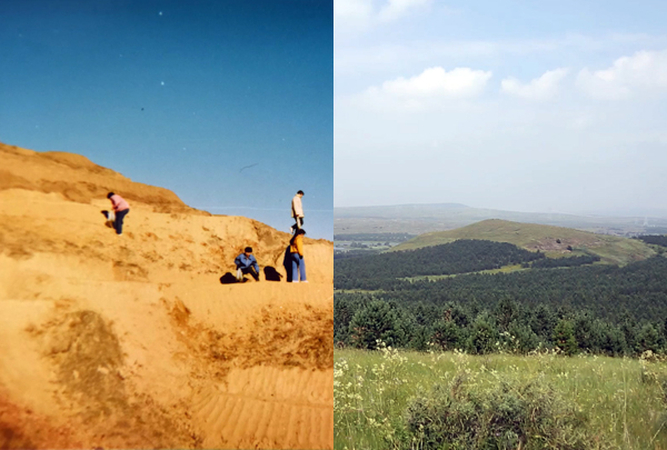 上世紀80年代的白二爺沙壩“除了黃沙就是黃沙”。如今,這里造林種草保存面積達12萬畝,植被蓋度提高到75%以上。左圖:白二爺沙壩治沙站辦公室供圖右圖:人民網(wǎng)記者王欲然攝