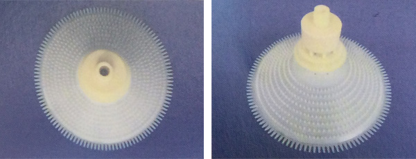 FX一2 6 0型旋混式曝氣器采用多層螺旋切割的型式進(jìn)行充氧曝氣,當(dāng)氣流進(jìn)入FX一260型混流型曝氣器時(shí),氣流首先通過(guò)二道螺旋切割系統(tǒng),切割后進(jìn)入下層的的多層鋸齒型布?xì)忸^,進(jìn)行多層切割,使氣泡切割成微氣泡,這樣大大提高了氧的利用