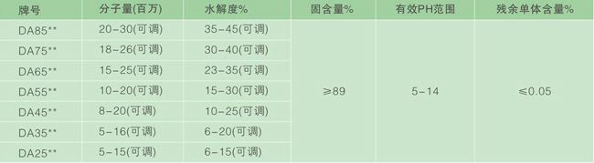 陰離子聚丙稀酰胺性能指標(biāo):(企業(yè)標(biāo)準(zhǔn):Q/AJC002-2008)