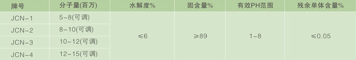非離子聚丙烯酰胺性能指標(biāo):(企業(yè)標(biāo)準(zhǔn):Q/AJC002-2008)